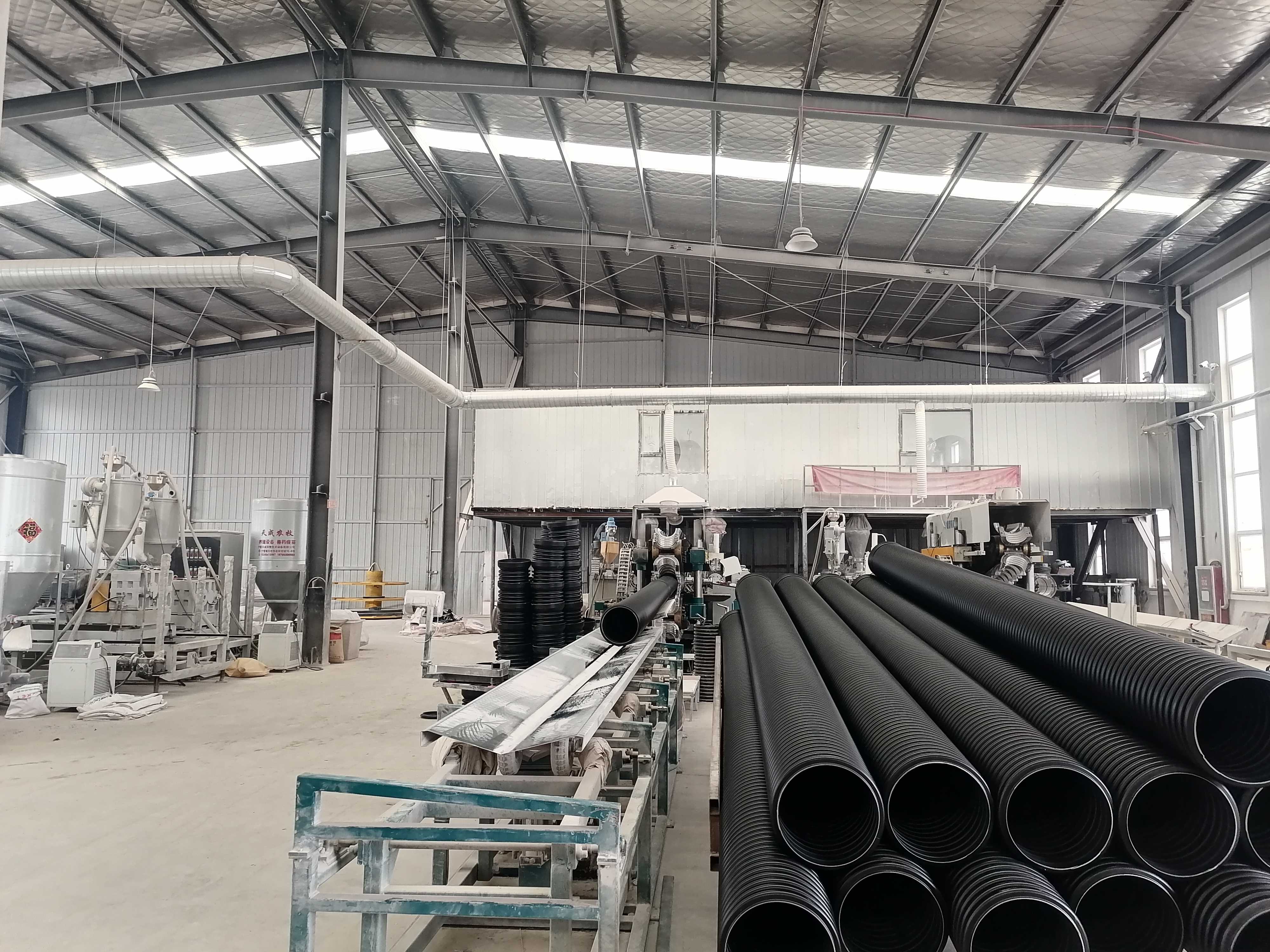目前公司主营产品有PE给水管、HDPE双壁波纹管、波纹管配件、HDPE钢带增强螺旋波纹管、HDPE中空壁缠绕管、HDPE缠绕结构壁B型管(克拉管)、HDPE钢丝网骨架复合管、孔网钢带聚乙烯复合管、塑料检查井、PVC-C电力管、MPP电力管、七孔梅花管、HDPE碳素螺旋管等管件管材,亿塑就像一颗璀璨明珠照亮中国西北地区。
